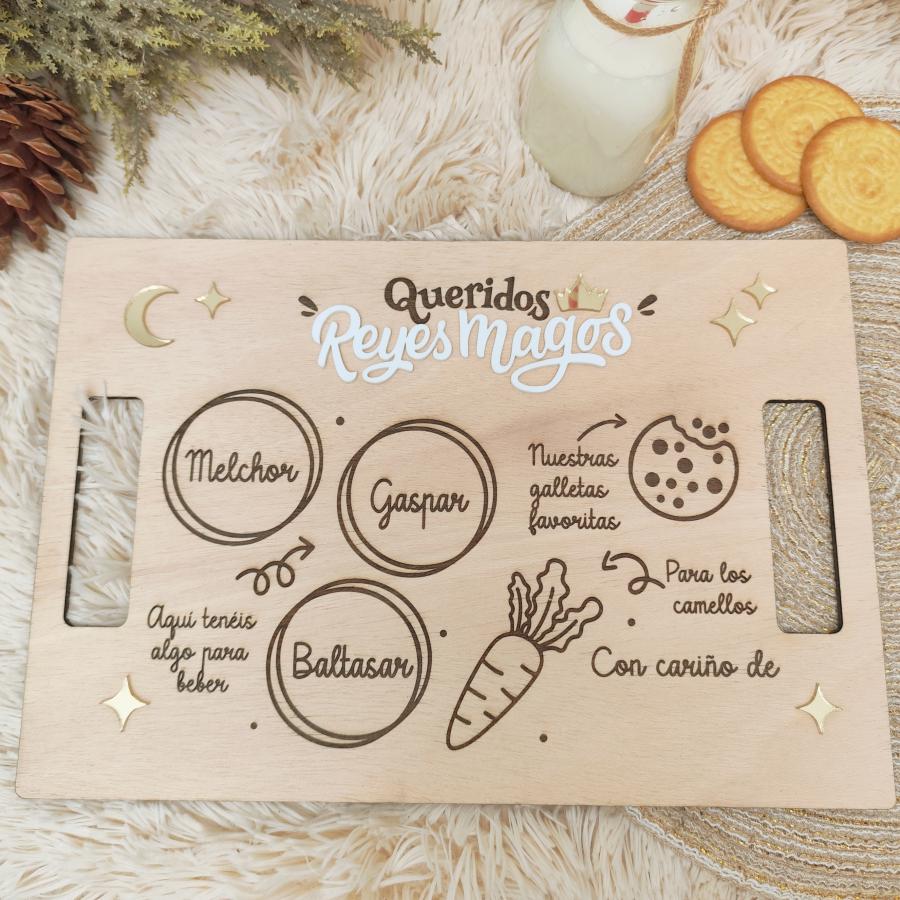 Por eso esta bandeja personalizada tiene espacio para dejar tanto a los Reyes Magos como a sus camellos bebida y comida para que repongan energía y puedan cumplir con todo su recorrido, pero lo mejor será la emoción de los más pequeños al prepararlo.
