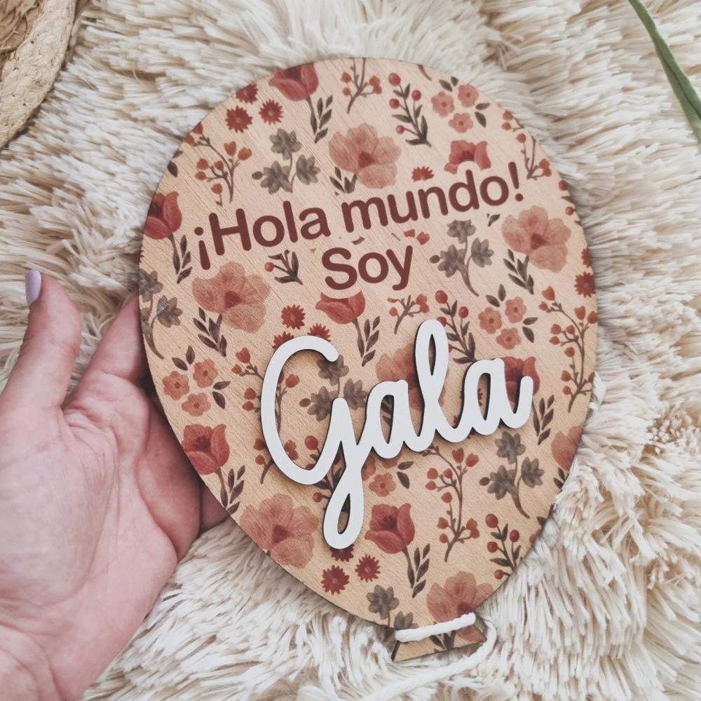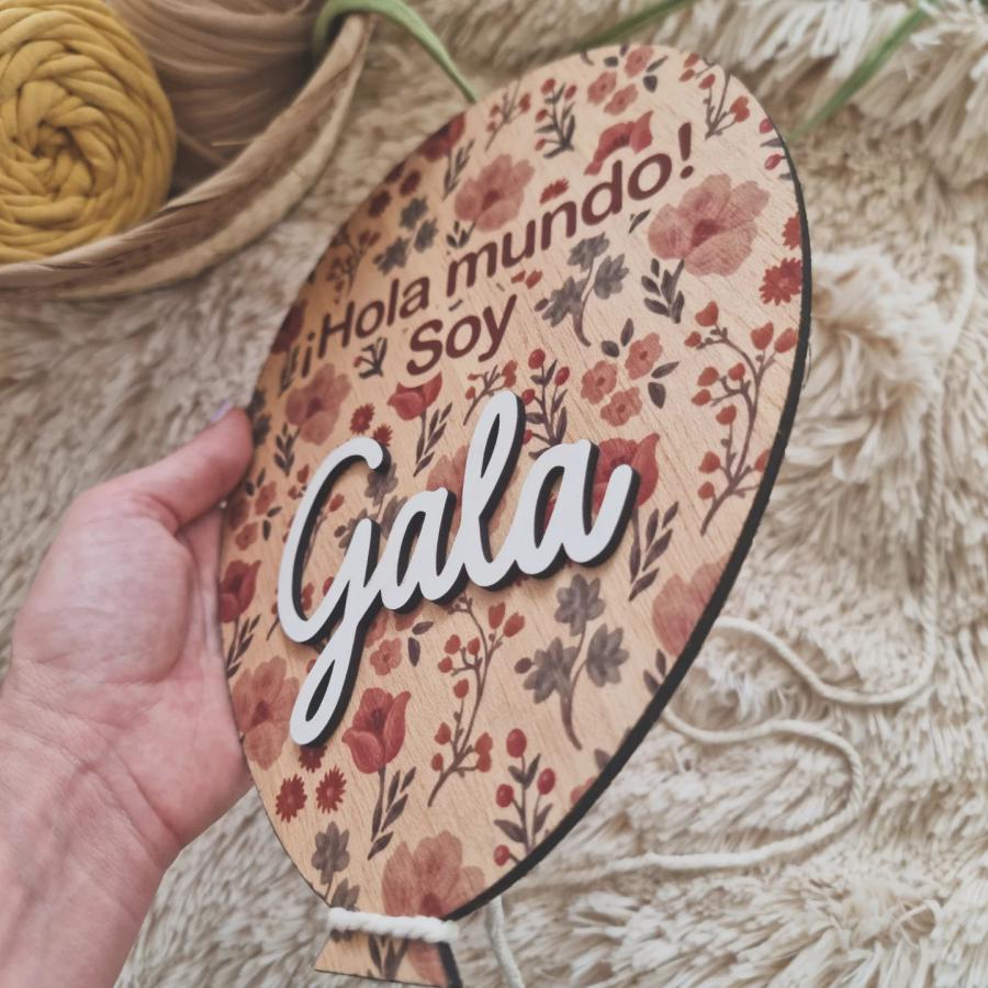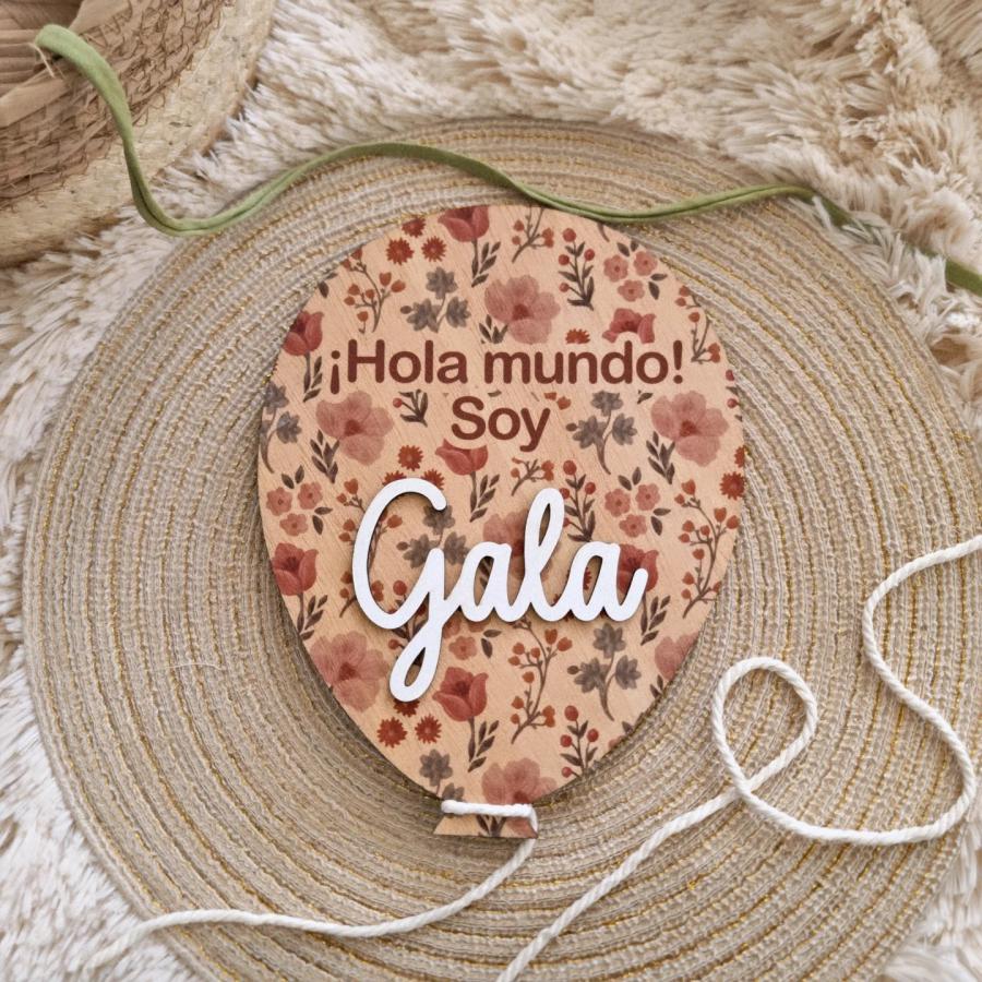 Globo de madera personalizado con nombre, un detalle único y tierno para dar la bienvenida al bebé.